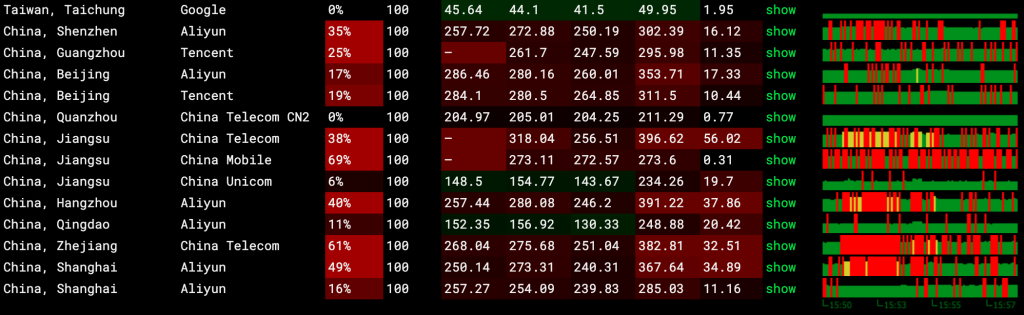 Taiwan CN 97.31 Mbit/s 98.22 Mbit/s 182.69 ms 0.0%