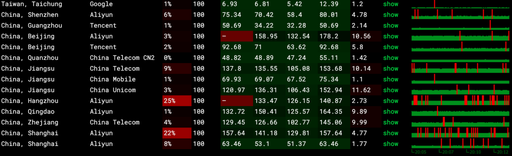 商家有自动更换IP的程序驻守,当流媒体解锁失效时会自动重新拨号换IP。大概每隔几小时就会更换一次IP,换完的新IP一般都没墙,没墙的时候移动和联通直连使用延迟也不高。