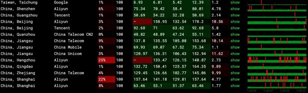 商家有自动更换IP的程序驻守,当流媒体解锁失效时会自动重新拨号换IP。大概每隔几小时就会更换一次IP,换完的新IP一般都没墙,没墙的时候移动和联通直连使用延迟也不高。