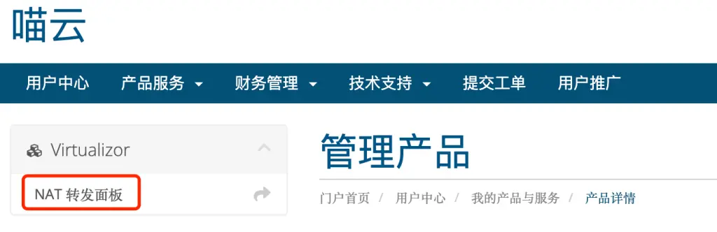 如果你没有使用过NAT的相关产品,请先进NAT插件的后台添加相关的转发端口: