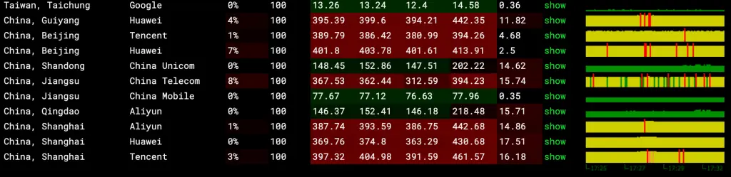 • 国内延迟丢包