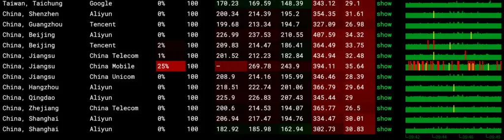 Node Name Upload Speed Download Speed Latency Packet Loss