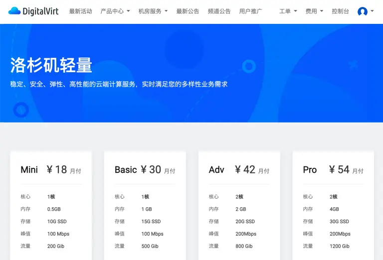 DigitalVirt:2022年5月多起家的国人商家,主营美国QN、4837、9929、新加坡BGP、香港CMI以及预售日本软银,本次测评的是其洛杉矶轻量套餐,面相流量不大的用户,为洛杉矶9929线路。