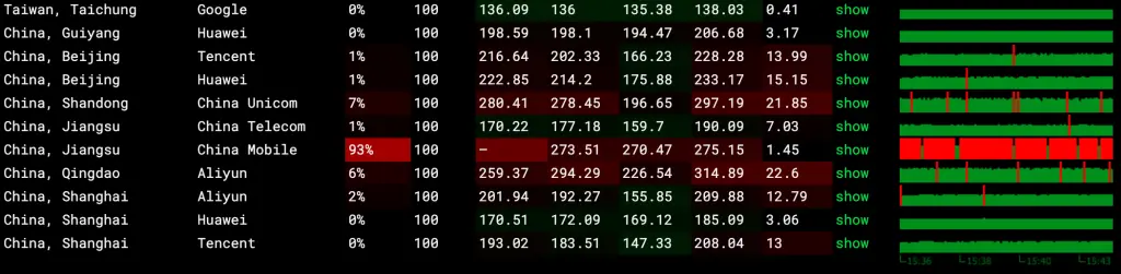 Taiwan       CN  437.63 Mbit/s     2946.32 Mbit/s      149.54 ms   0.0%