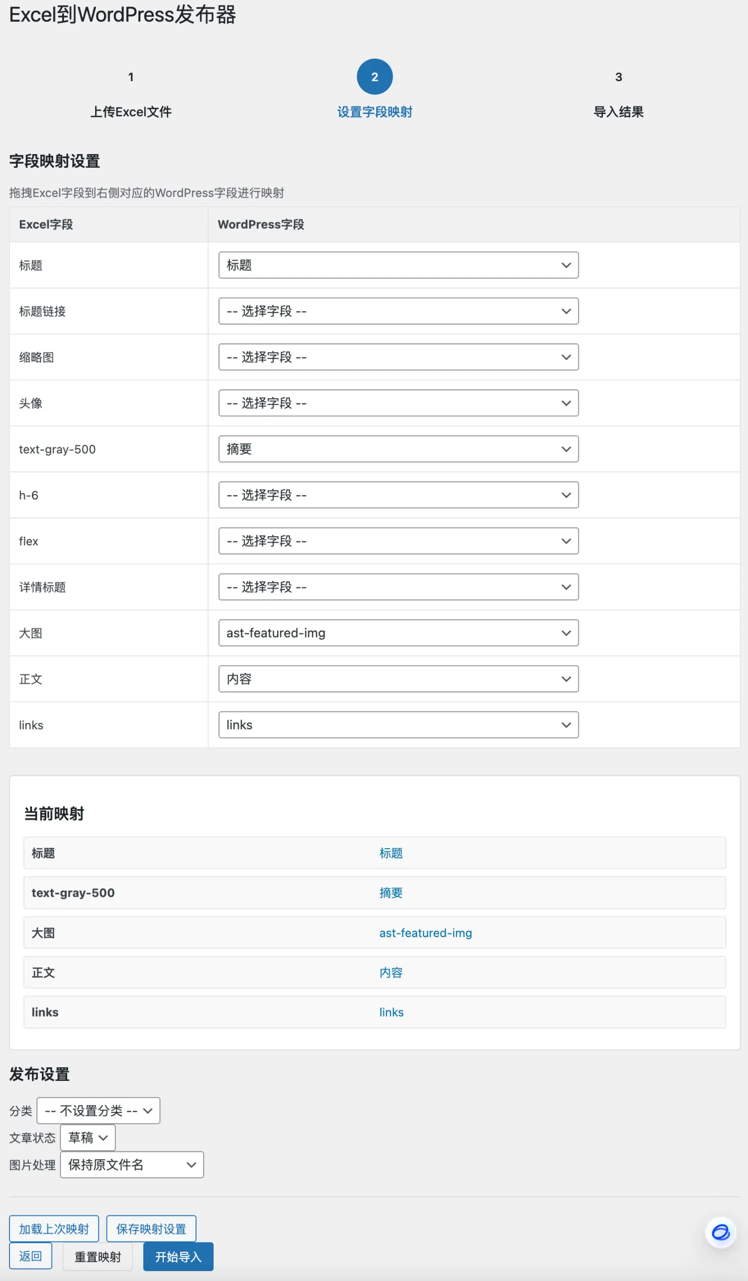 - 灵活的字段映射,可将Excel列映射到WordPress字段
