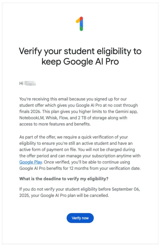 之前白嫖Gemini的一年学生免费方案在昨天收到了二次验证的邮件,花了点时间通过了这个验证,在这里分享一下流程。