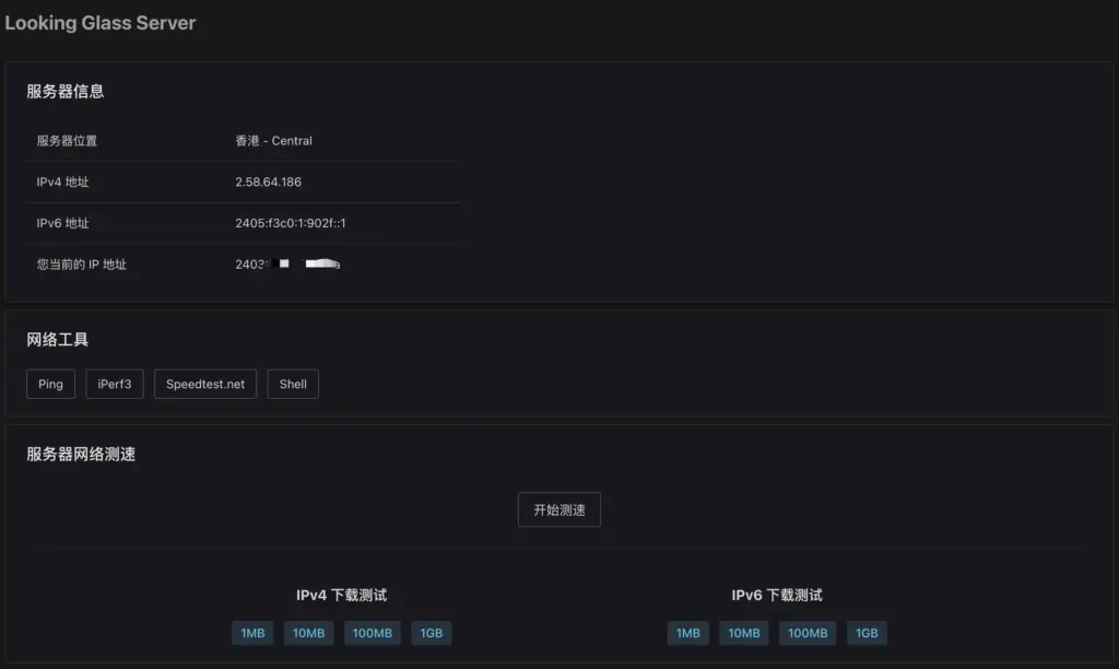 ALS - Another Looking-glass Server是由IDC.WIKI的老板鸡总制作并开源的Looking Glass程序,可以提供在线Ping、在线测速、在线Speedtest.net测速、iPerf3测速以及在线shell(可用来traceroute),界面美观、功能强大、安装简单。