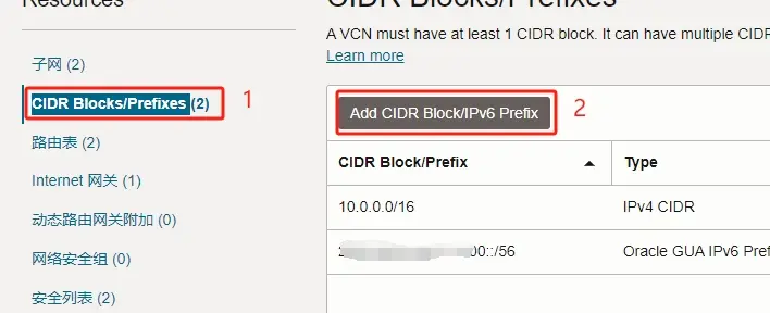 4.点击右侧界面中的 Add CIDR Block/IPv6 Prefix