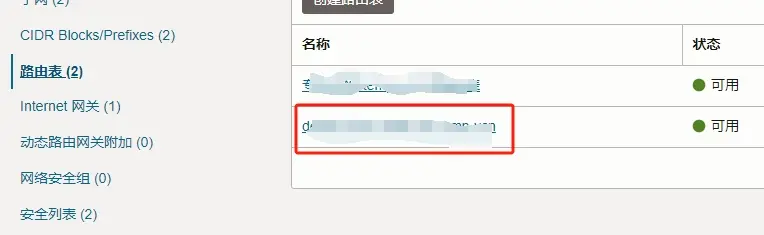 2.点击页面左侧边栏的 路由表。选择正在使用的路由表。