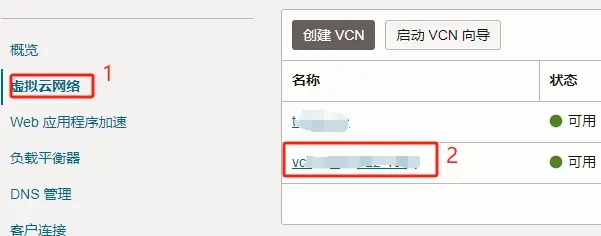 1.打开Oracle 虚拟云网络控制台
